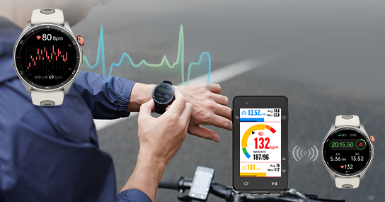 支持蓝牙心率推送, 运动中过高过低随时提醒。
